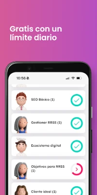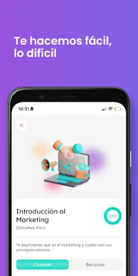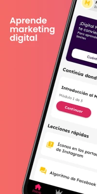 Somos la primera aplicación educativa en español en Estados Unidos y en Latinoamérica, para aprender de manera novedosa y divertida sobre marketing digital. Aprende con nuestros cursos y personajes sobre campañas y publicidad online, Facebook Ads, Business Suite, Google Ads, todo sobre las redes sociales, e-commerce o comercio electrónico, comunicar y vender en los canales digitales. Te hacemos fácil lo difícil: lo que necesitas saber sobre marketing digital en una sola app, a tu medida y si le dedicas pocos minutos diarios es suficiente.