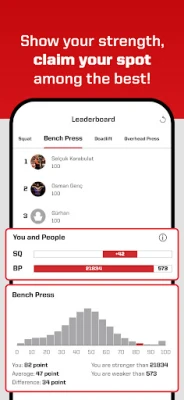 Test yourself in Squat, Bench Press, Pull-Ups, and Deadlifts. Calculate your 1RM, powerlifting total, and compare your fitness level with other users using the LightWeight score. Record your personal bests on video and climb the leaderboard!