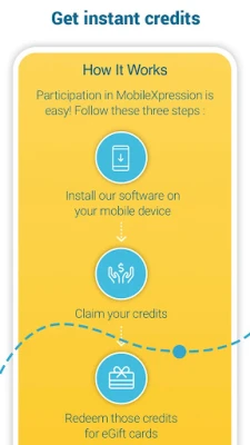 Get started by creating your MobileXpression.com account and installing the app. You’ll be able to login at any time to see your credits accumulate or choose to redeem them for gift cards. It’s just that easy.
